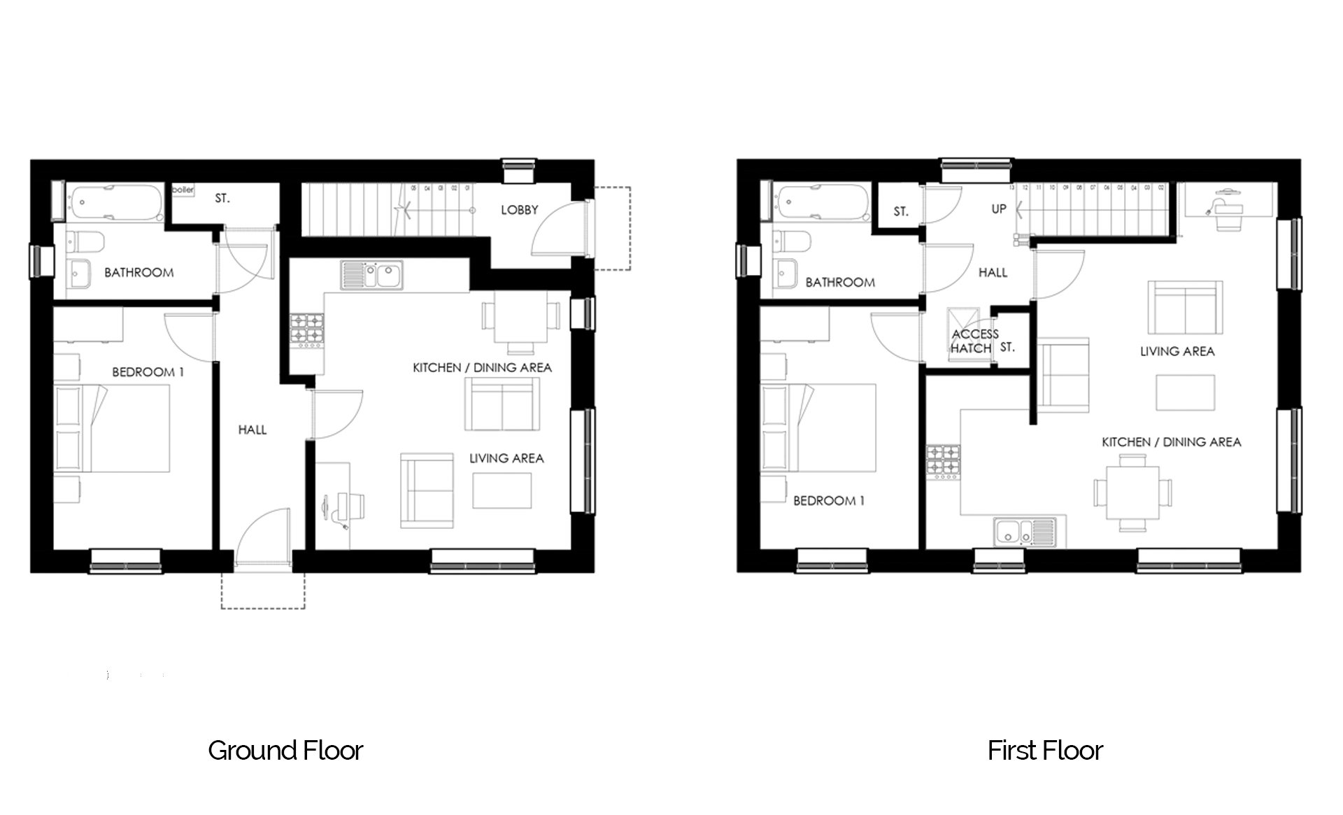 Virtual freehold maisonette comprising of living/kitchen/dining room, bedroom and bathroom. A high quality specification which includes oversized windows and self-contained gardens.