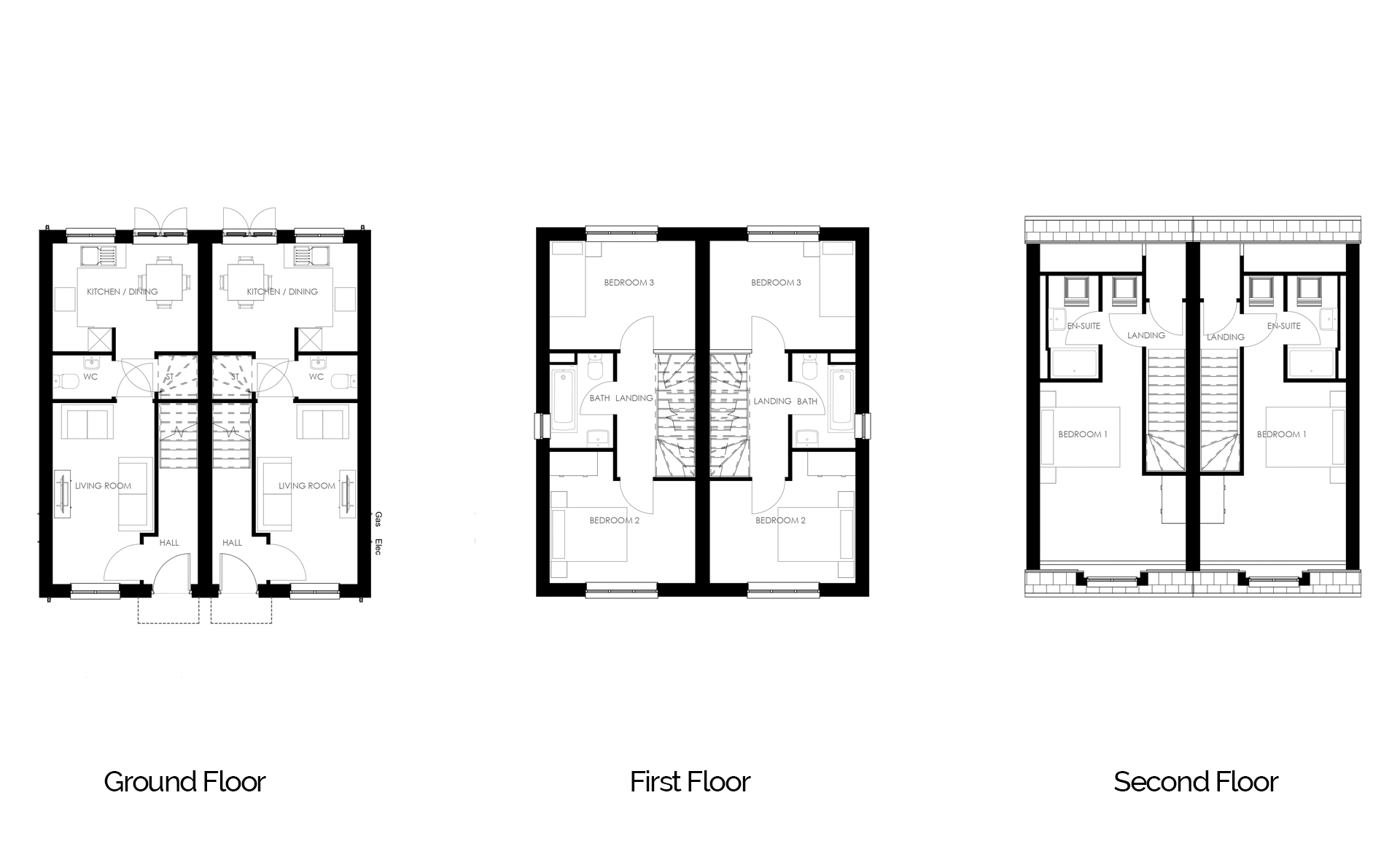The Sycamore allows for large, bright, living spaces to include the kitchen, dining and living areas heading out to the garden, maximising the flow from inside to out. First floor comprises of two bedrooms and family bathroom. Second floor houses a master suite.